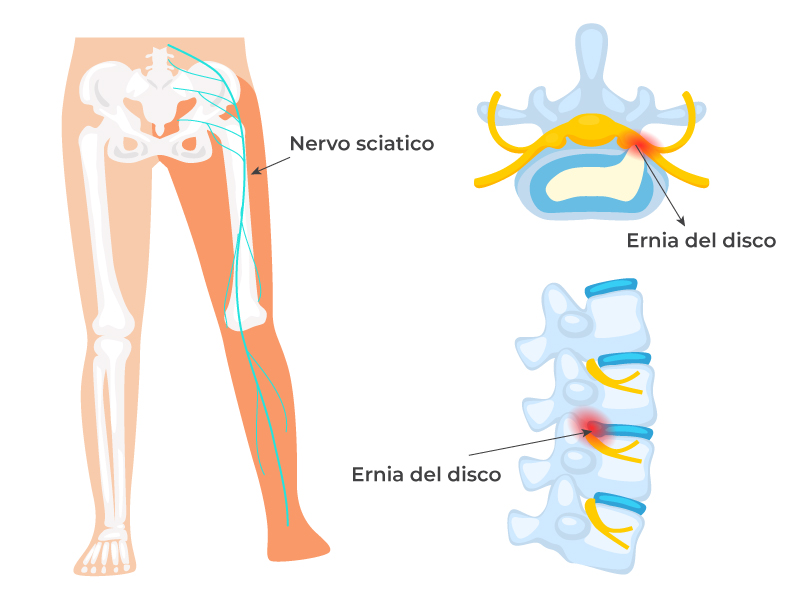 - Ernia del disco o compressione delle radici nervose.