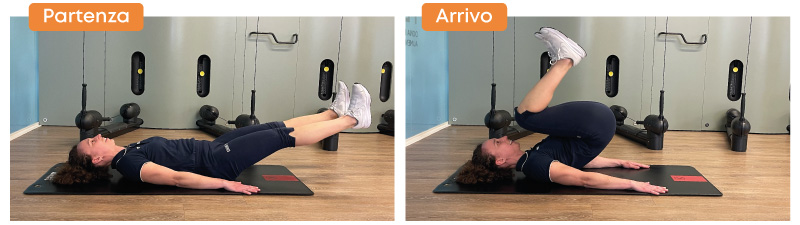 Il movimento deve essere lento e preciso: l’obiettivo non è “lanciare” le gambe, ma arrotolare il bacino sfruttando la contrazione addominale. Inspirare nella fase di ritorno ed espirare durante la salita aiuta a migliorare l’attivazione profonda.