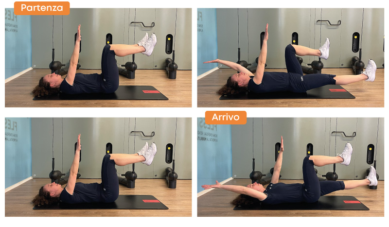 Il focus è tutto sulla stabilità: l’addome resta attivo, il bacino fermo, il respiro controllato. Ogni movimento avviene in modo lento e consapevole, rendendo l’esercizio ideale anche per chi lavora sulla postura o sulla prevenzione dei dolori lombari.