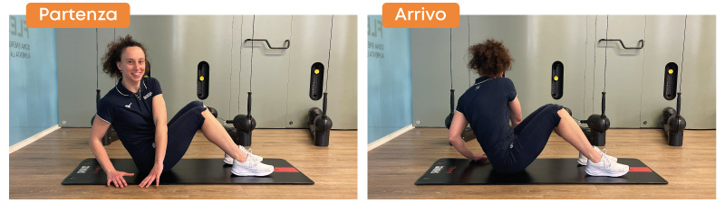 Il russian twist coinvolge in modo diretto gli obliqui, responsabili delle rotazioni del tronco e della stabilità laterale. Seduti a terra con le ginocchia piegate, busto leggermente inclinato all’indietro e schiena neutra, si ruota il torso da un lato all’altro mantenendo l’addome contratto.